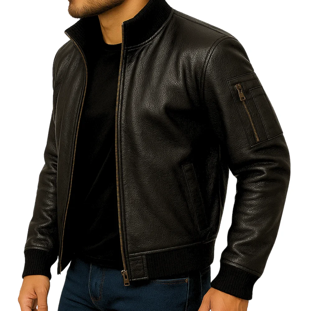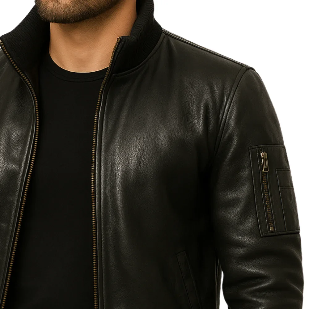 Men’s black Cowhide bomber leather jacket is also focused on practical use. This includes two side pockets, a mini zipper pocket on sleeve and two interior pockets to store important items such as wallets, phones or keys. A strong zipper in front closes evenly and adds its stylish edge. Strengthens the support structure, ensures durability and comfort every time you use it. The real Cowhide skin develops a rich character over time, making the jacket even more unique. This piece mixes fat design with everyday function, which gives you more than comfort- it provides a permanent investment in style and confidence. If you want to upgrade to use daily or add a statement jacket to your collection, this Men’s Black Cowhide Bomber Leather Jacket brings stability, age and permanent appeal to a package.