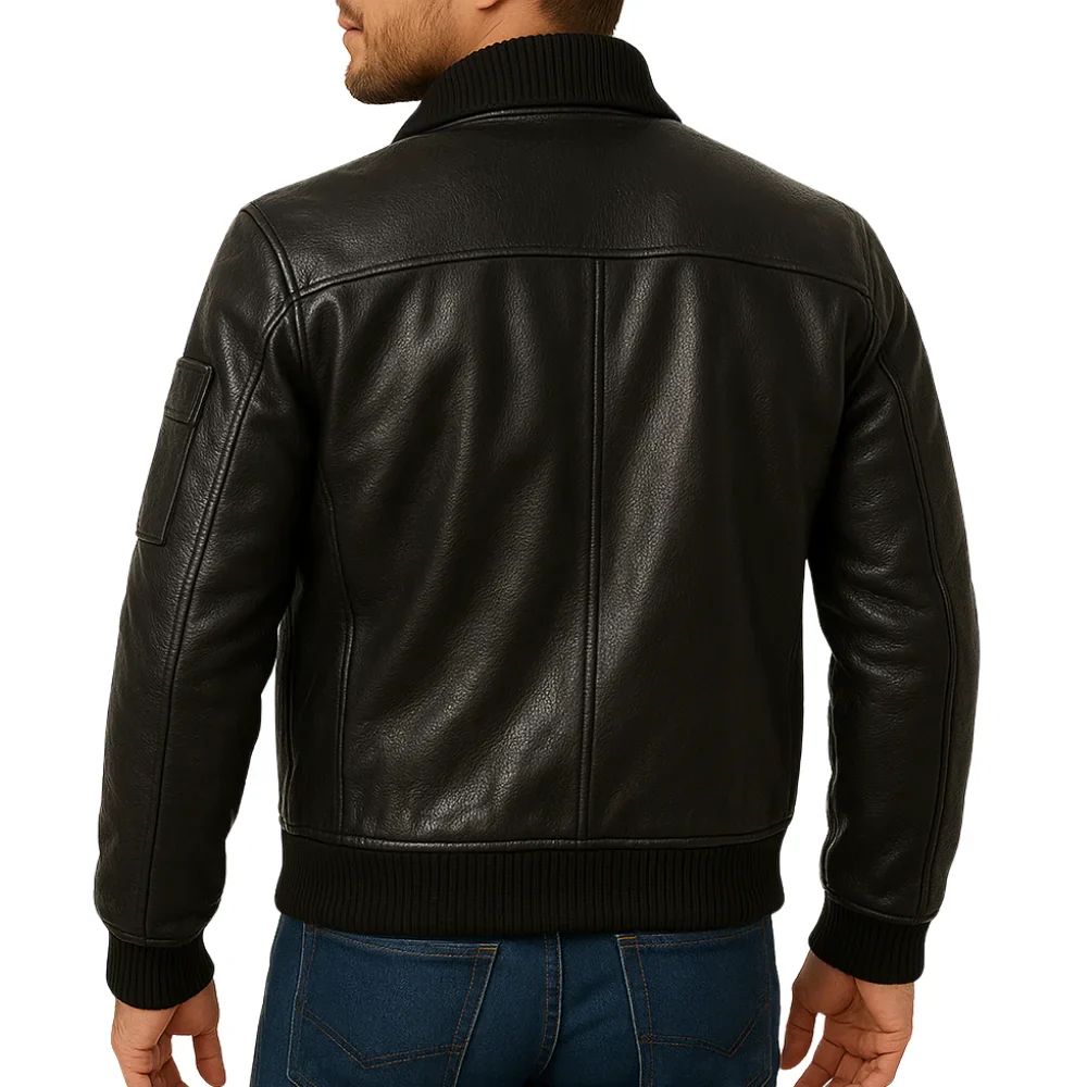Classic Black Cowhide Aviator Style Leather Bomber Jacket