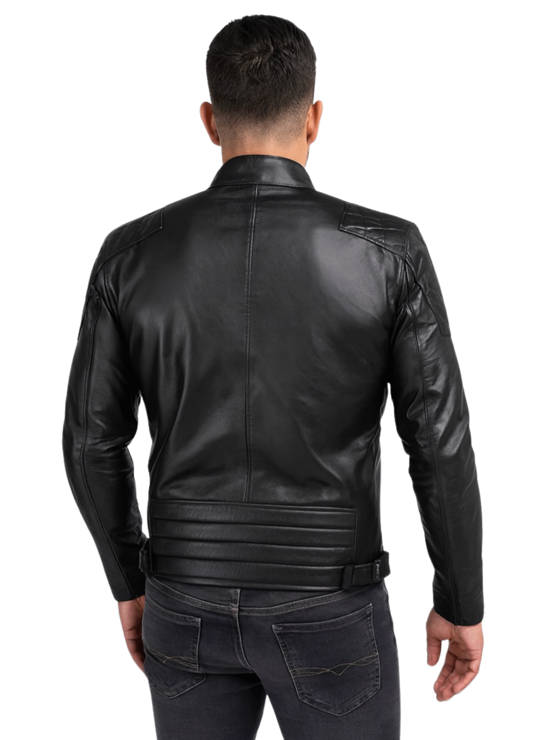 Men’s Quilted Shoulder Black Cafe Racer Leather Jacket